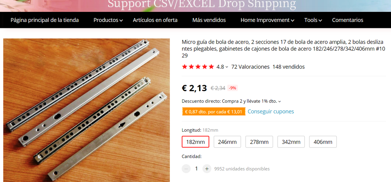 Unas guías de cajón, las más pequeñas de 18cm. Yo compre estas por 2,30€ con envío gratis